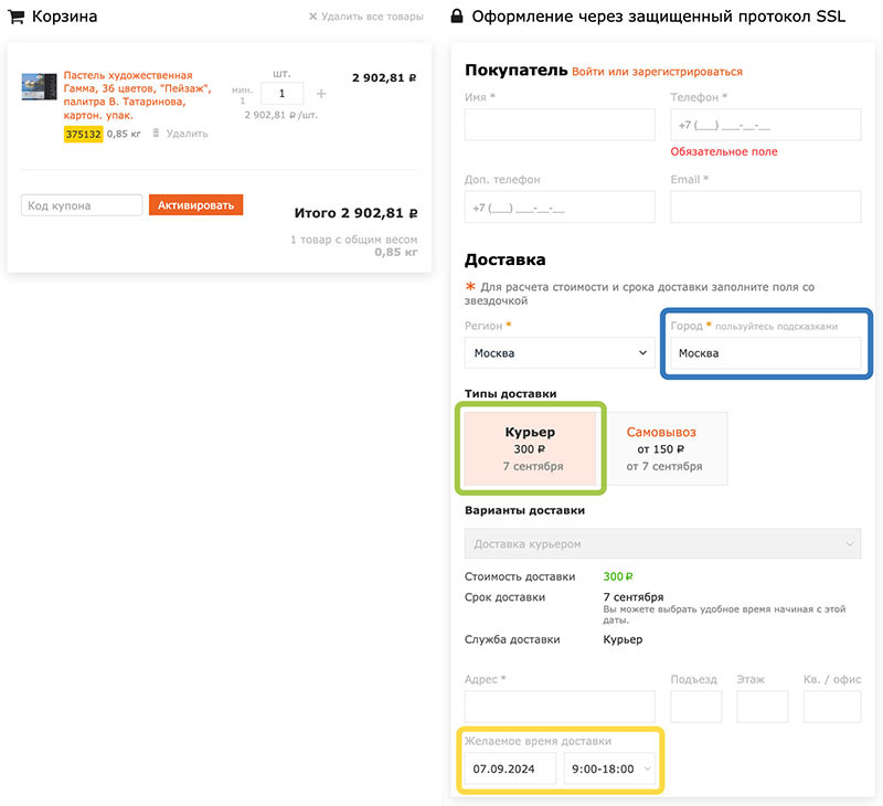 Стоимость доставки рассчитывается автоматически, зависит от веса заказа и населенного пунктаВы можете выбрать нужный товар, положить его в корзину и увидеть стоимость доставки на странице оформления заказа выбрав нужный город, для этого не нужно вводить никакие контактные данные, также на данной странице отображается ближайшая дата и возможные интервалы доставки